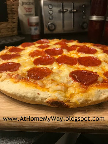 - Quick Pizza Crust - I made a double batch of dough and made one pizza with mozzarella and pepperoni; the other with pepper jack / sharp cheddar cheese and triangles of lunchmeat ham. Very good. Caseys and Pizza Hut having got nothing on my homemade pizza! If you can run a sink of hot dishwater, you can make this crust.