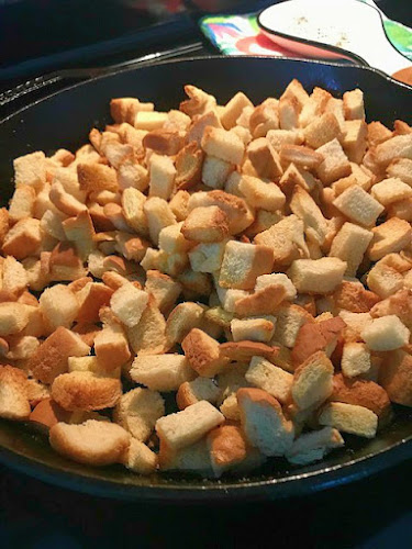 - Croutons - On grocery pickup day, I snipped all the stale bread and buns into croutons and baked until dry in the oven. Doug will throw everything out if I don't get it done first. I don't even use any oil or seasonings. They are excellent plain and I can store it in the freezer and eat with soup or on salads. Homemade Tomato Soup and Homemade Alphabet Soup are both great to store in the freezer. I can also use them for Homemade Stovetop Stuffing.